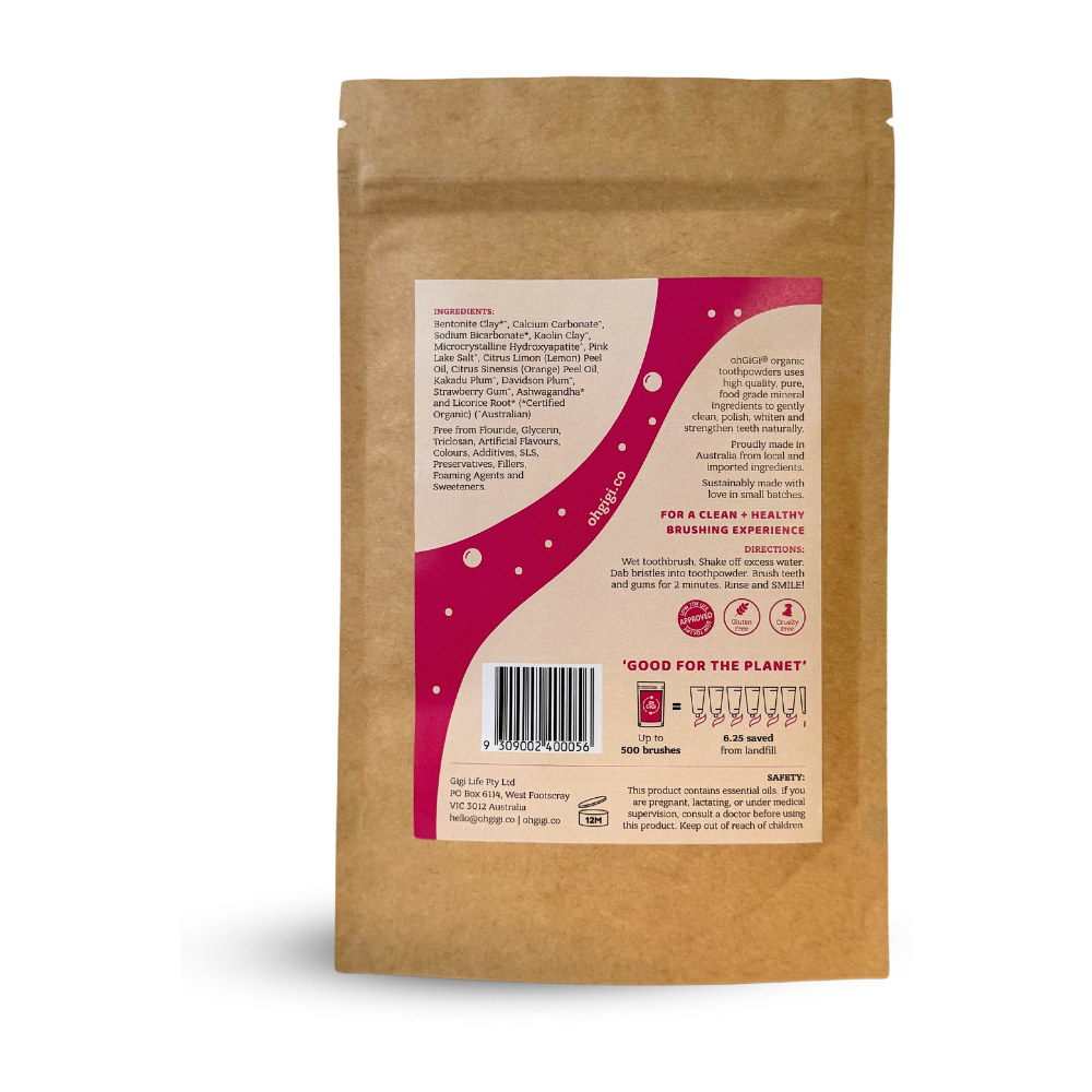 Top up your ohGiGi Tooth Powder glass jars with this bulk refill pack two and a half times over!