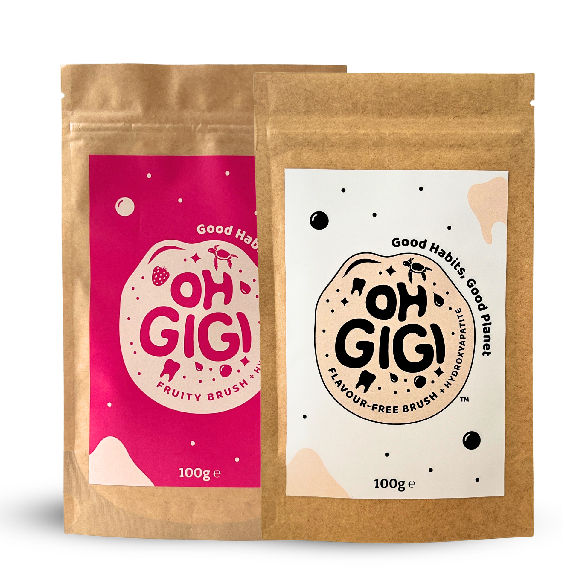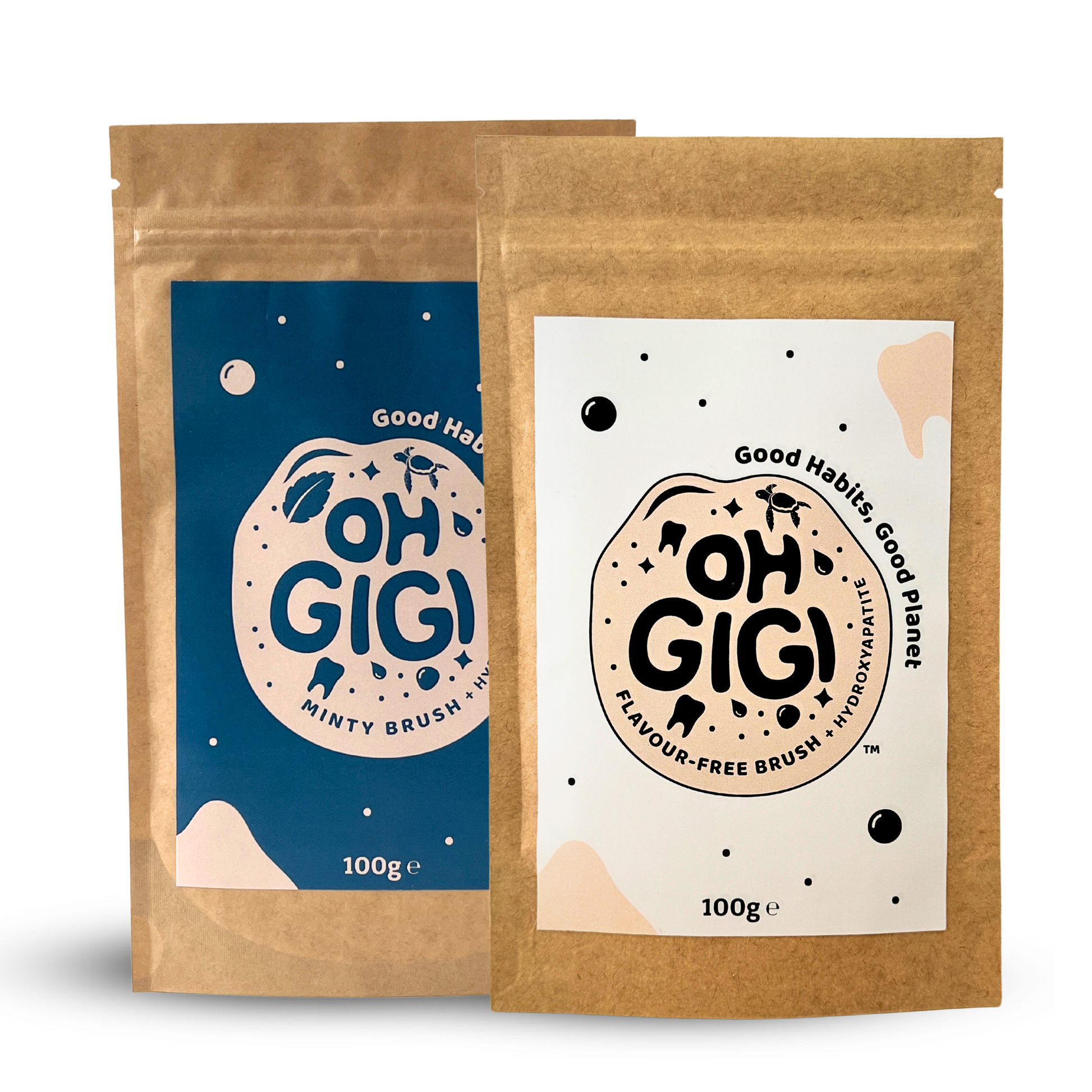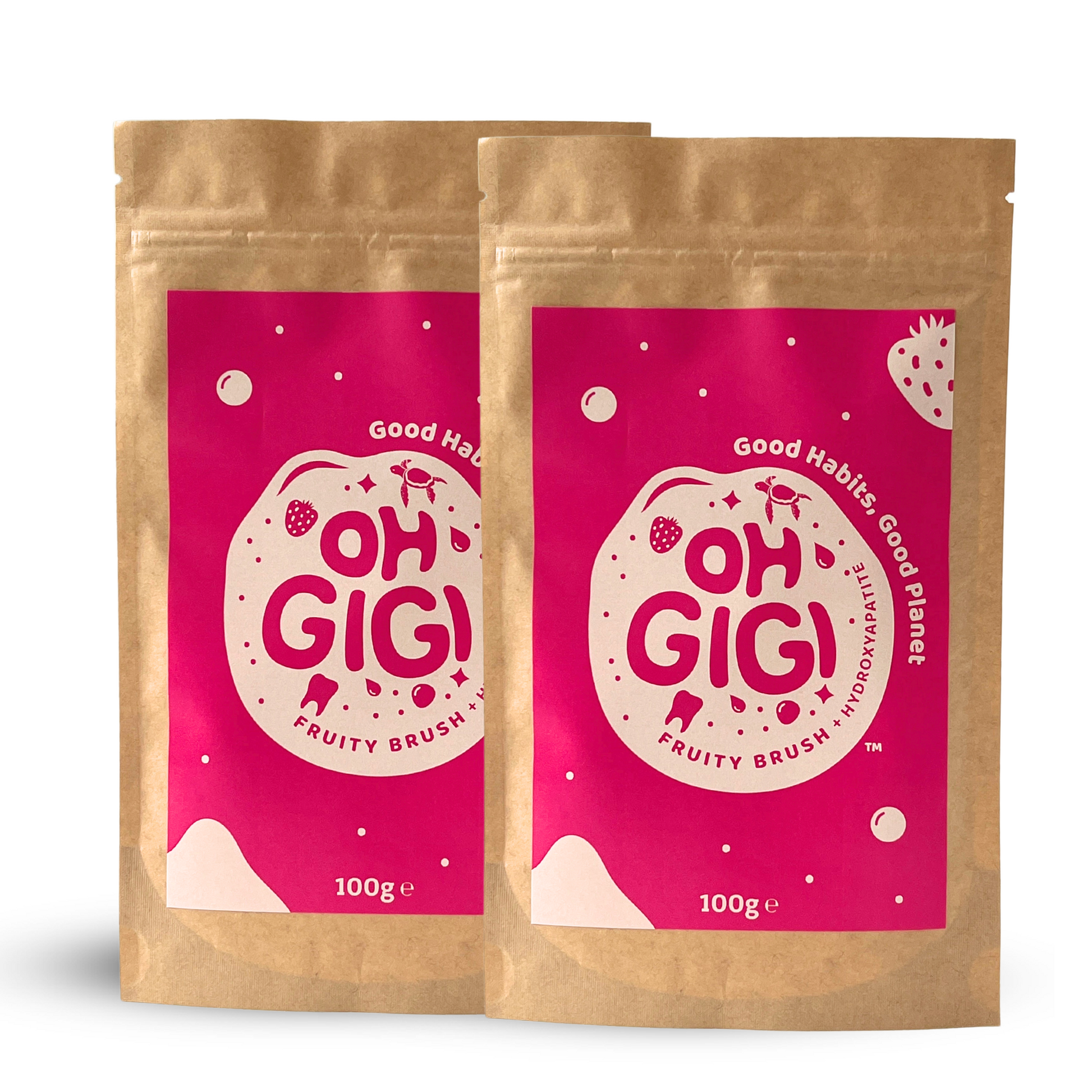 Top up your ohGiGi Tooth Powder glass jars with this bulk hydroxyapatite refill two-pack bundle with your choice of flavour combinations!