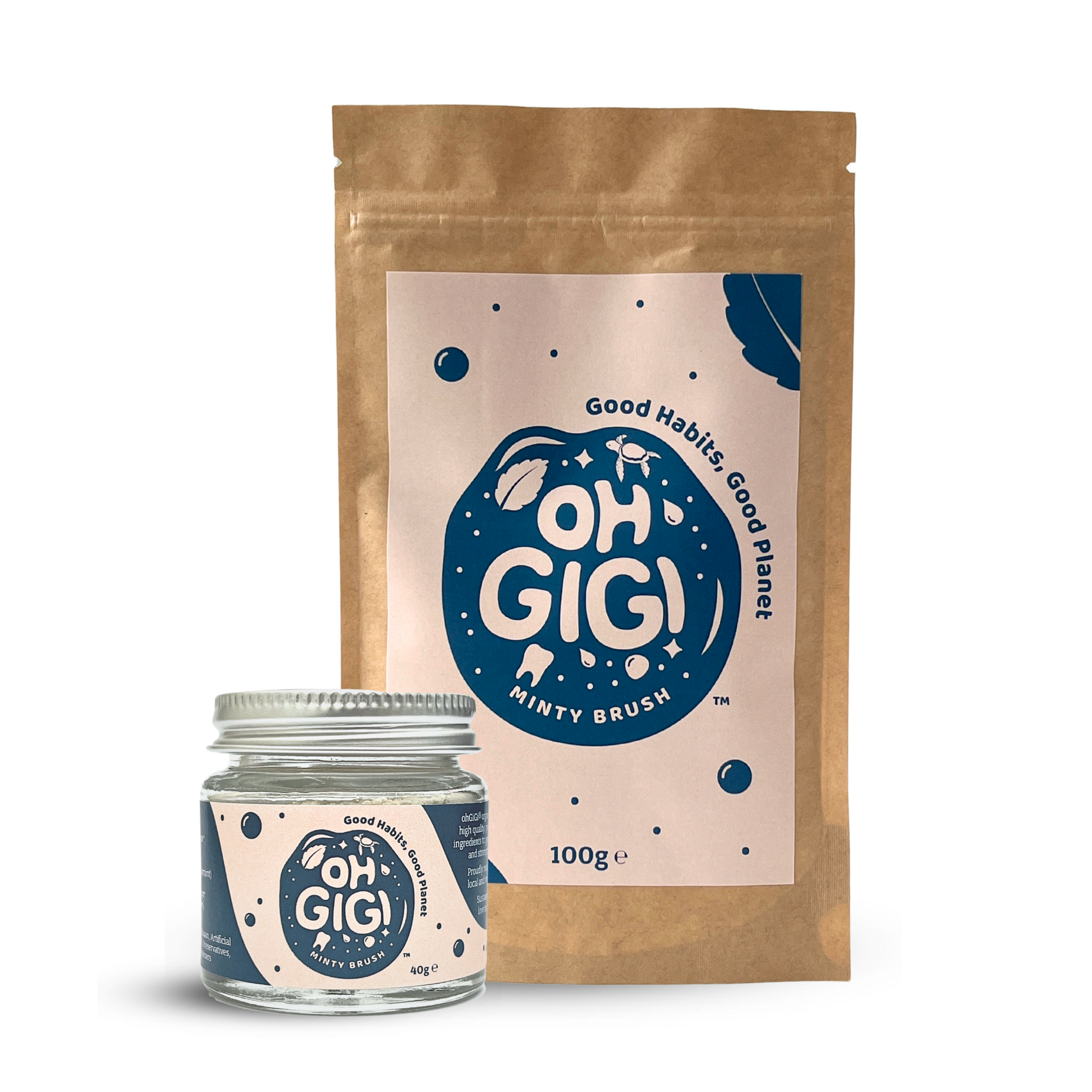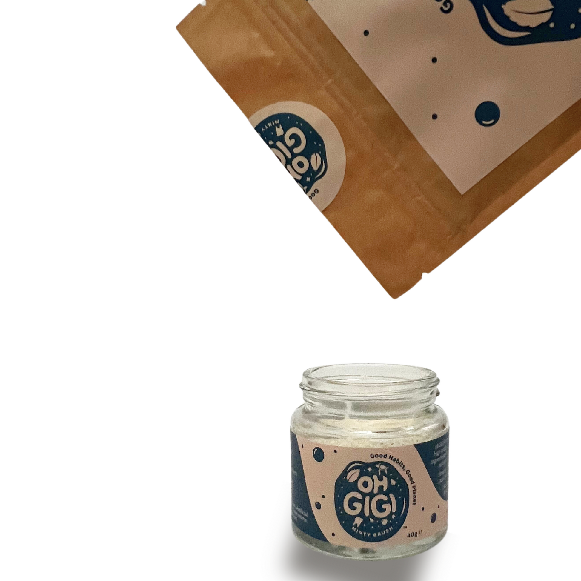 Kick off your new habit with an ohGiGi Tooth Powder jar and a bulk refill pack ready to top up your glass jar two and a half times over!